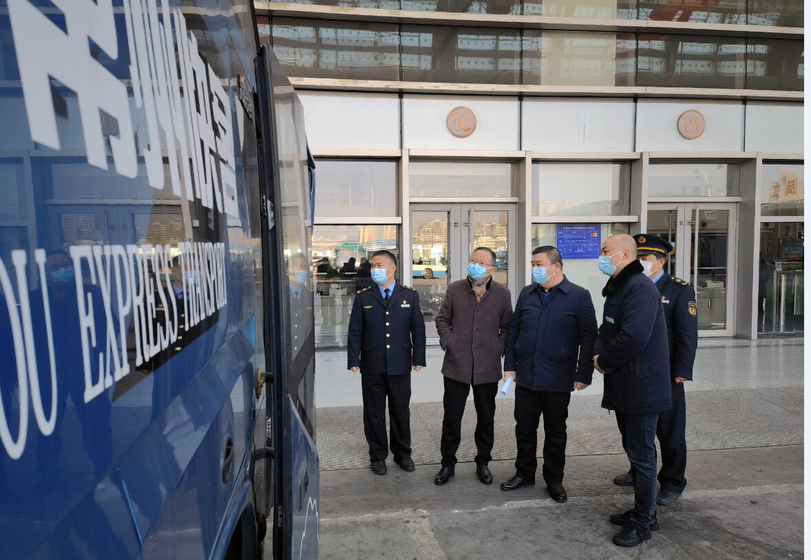 1月12日上午,省交通運(yùn)輸綜合執(zhí)法局調(diào)研員周黃德一行至常州汽車客運(yùn)站就道路運(yùn)輸疫情防控進(jìn)行督導(dǎo)檢查,市交通運(yùn)輸執(zhí)法支隊(duì)副支隊(duì)長王丁柱,集團(tuán)公司副總經(jīng)理費(fèi)軒龍及站務(wù)分公司負(fù)責(zé)人陪同督查。
