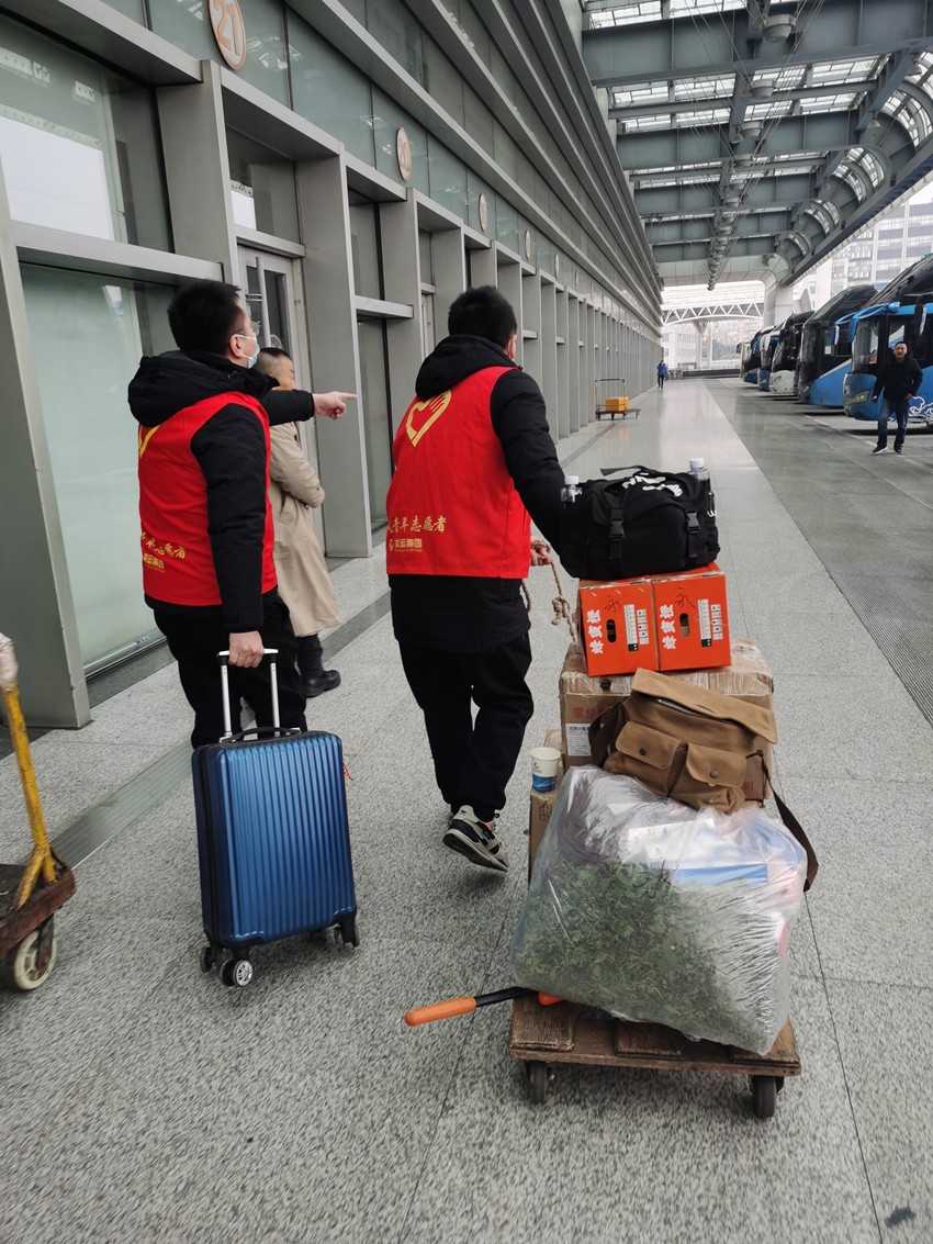 “怎樣讓我們的志愿服務(wù)更走心,更加滿足旅客進(jìn)站乘車的真正剛需”,常運(yùn)集團(tuán)在組織今年的“愛(ài)在旅途 順風(fēng)志愿行”春運(yùn)志愿服務(wù)活動(dòng)時(shí)首先專注這里。務(wù)工返鄉(xiāng)的旅客行李多,中老年旅客需要更多的人工指引幫助,攜帶“小候鳥(niǎo)”回家的既要拎著行李還要拖著孩子……各種各樣的情況,各種各樣的需求。因此,常州汽車站順風(fēng)志愿服務(wù)隊(duì)將回答問(wèn)詢、站內(nèi)引導(dǎo)、幫提行李這些乘車剛需作為服務(wù)重點(diǎn),2月7-8日,志愿者們分布在實(shí)名制進(jìn)站口、安檢儀旁及候車室、一樓廣場(chǎng),一幕幕溫暖的故事持續(xù)上演。一對(duì)回新沂的老夫妻,拖著平板車,上面放著紙箱拎袋七八個(gè),外加兩輛不新的折疊自行車,拖車寬到進(jìn)不了閘機(jī);一位阿姨拖著大號(hào)行李箱,手提拎包拎袋四五個(gè),獨(dú)自上不了電梯;一個(gè)大叔是孩子在“常州汽車站”微信公眾號(hào)上幫買(mǎi)了票,以為要取了票才能乘車又不會(huì)操作;還有一雙干燥皴裂的手拿著一張車票,不知道在哪里檢票而不知所措,這些都在志愿者和車站工作人員的幫助下,順利地踏上了歸途,他們一連十幾個(gè)的“謝謝”和不?;仨狞c(diǎn)頭笑容,讓志愿者們也靦腆起來(lái)。