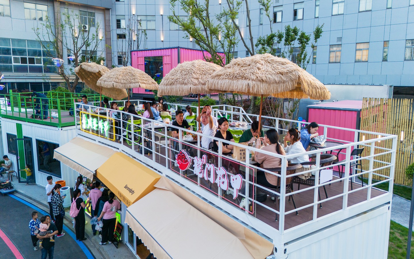 的核心銜接點;身處長三角知名產(chǎn)教城融合示范區(qū),緊鄰常州大學(xué)城、科教城。街區(qū)占地約120畝,已投資1.5億元,定位“Z世代”青年網(wǎng)紅潮集地,切中文商旅融合、夜經(jīng)濟(jì)、她經(jīng)濟(jì),通過創(chuàng)意餐飲、文創(chuàng)市集、微醺空間、日咖夜酒、潮流運動、藝術(shù)研學(xué)、宴會中心、網(wǎng)紅書屋、親子文娛、城市營地等多功能社交業(yè)態(tài),立足打造長三角城市微度假特色目的地與文旅新地標(biāo)。作為開放式城市公園風(fēng)格,街區(qū)分“東中西”3大區(qū)域、7塊生活版塊,聚集了創(chuàng)意餐飲、文創(chuàng)市集、潮流運動、藝術(shù)研學(xué)、親子文娛、城市營地等多功能社交業(yè)態(tài)。其中,“運動+藝術(shù)”雙活動廣場超1萬平方米,汽車、森系街區(qū)、無界秀場、國際友人俱樂部、青年情緒引力場等創(chuàng)意主題空間將陸續(xù)上線。